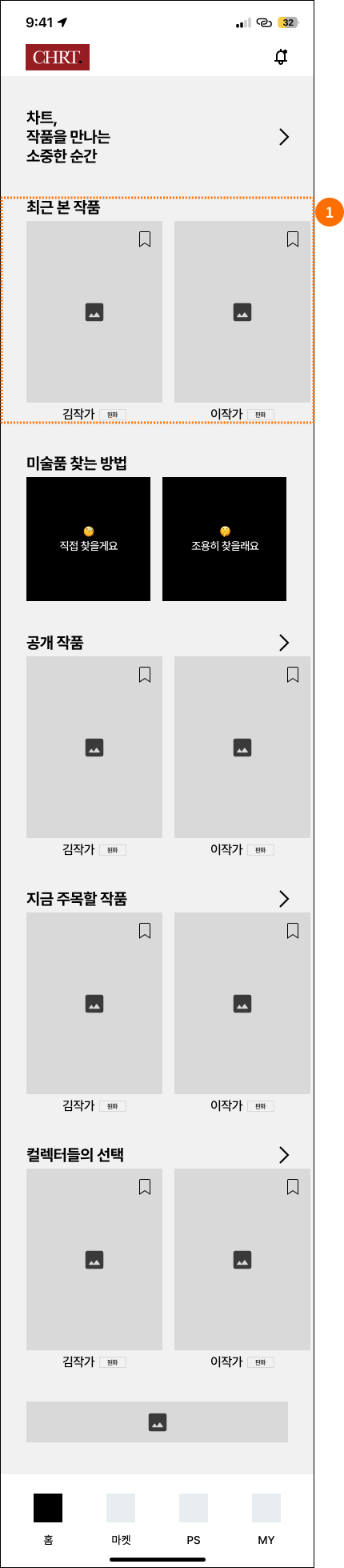 | 7 | 컬렉터들의 선택 (캐러셀) | py 20px | 가로 스냅 | 동일 |