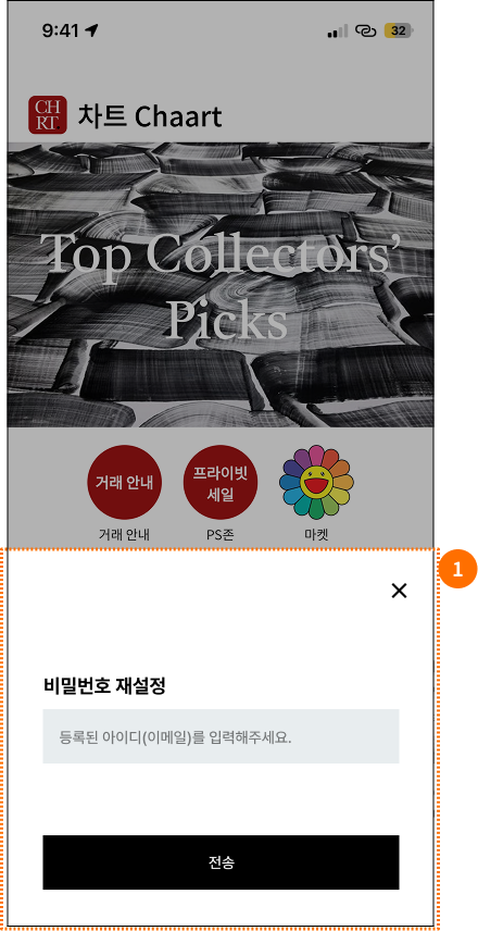 | 2 | 비밀번호 재설정 메일발송 완료 바텀시트 |