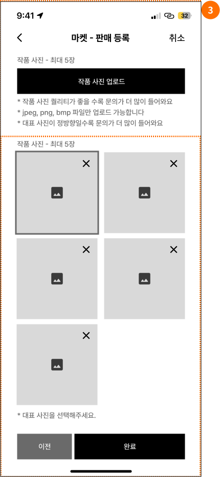 | 3 | 작품 사진확인 및메인 사진선택 |
