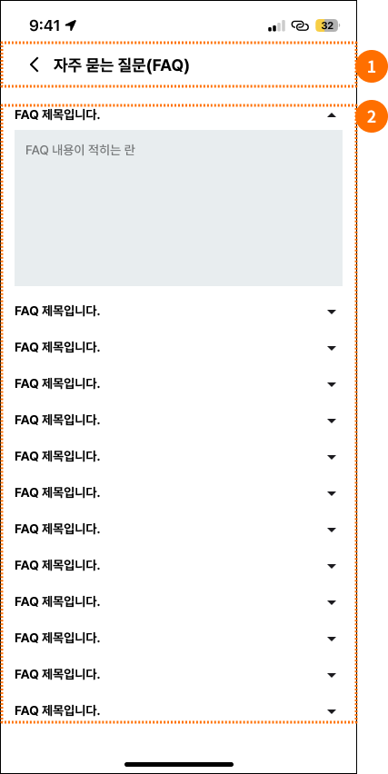 - 타이틀: 자주 묻는 질문(FAQ)