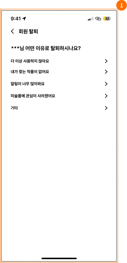 | 1 | 회원탈퇴 사유 선택 화면 |