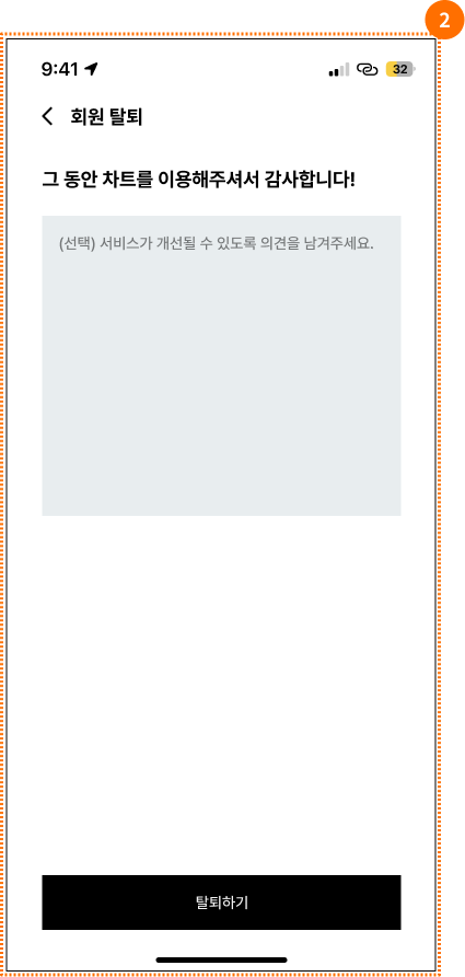 | 2 | 회원탈퇴 서비스 개선 의견 작성 화면 |