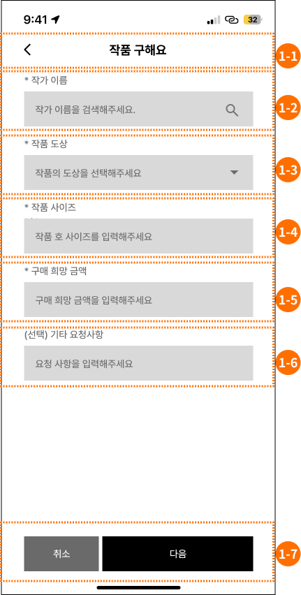 | 1-6 | 기타 요청사항 입력필드 |